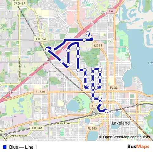Bus Blue - Line 1 in Lakeland: Stops & Timetable