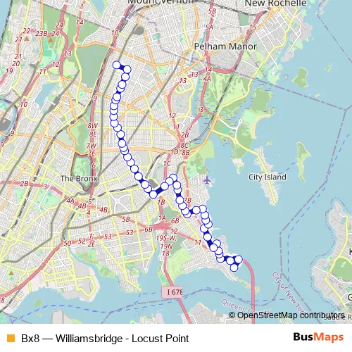 Click here to view the nearest Bx8 - Williamsbridge - Locust Point bus stop.