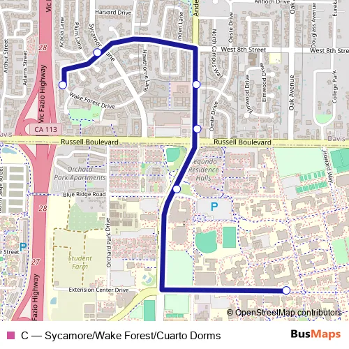 Bus C - Sycamore/Wake Forest/Cuarto Dorms: Full Schedule in Woodland