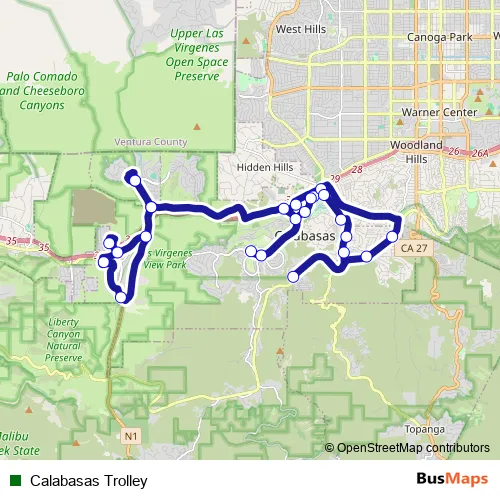 Additional information: Calabasas Trolley has 25 stops and the total trip duration for this route is approximately 60 minutes.