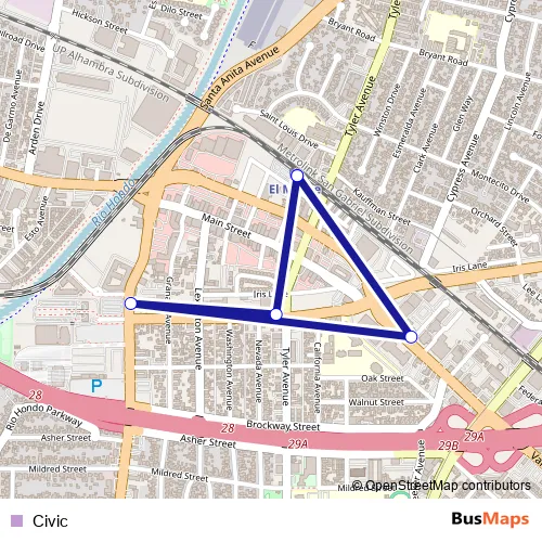 See why over 2 million users trust and consider busmaps.com as the best public transport website. busmaps gives you El Monte Buses suggested routes, real-time bus tracker, line route maps in El Monte, and helps to find the closest Civic bus stops near you. No internet available? Download an offline PDF map and bus schedule for the Civic bus to take on your trip.