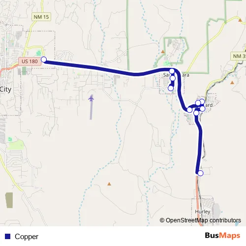 See why over 2 million users trust and consider busmaps.com as the best public transport website. busmaps gives you Bayard Buses suggested routes, real-time bus tracker, line route maps in Bayard, and helps to find the closest Copper bus stops near you. No internet available? Download an offline PDF map and bus schedule for the Copper bus to take on your trip.