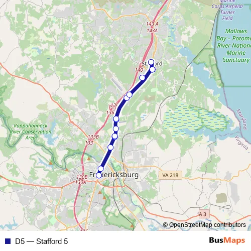 Bus D5 - Stafford 5: Full Schedule in Fredericksburg