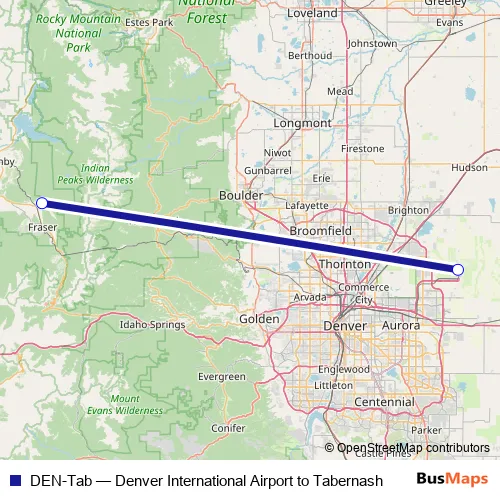 Click here to view the nearest DEN-Tab - Denver International Airport to Tabernash bus stop.