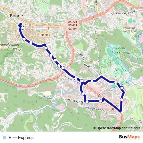 Bus E - Express: Full Schedule in Boone