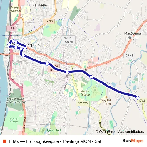 Bus E Ms - E (Poughkeepsie - Pawling) MON - Sat in Poughkeepsie: Stops & Timetable