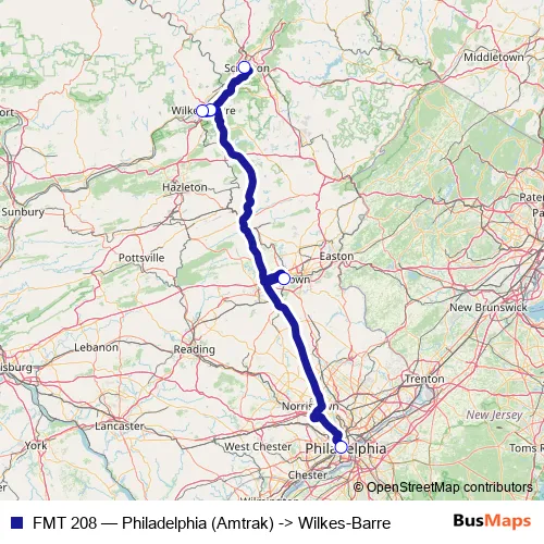 Bus FMT 208 - Philadelphia (Amtrak) -> Wilkes-Barre in Scranton: Stops & Timetable