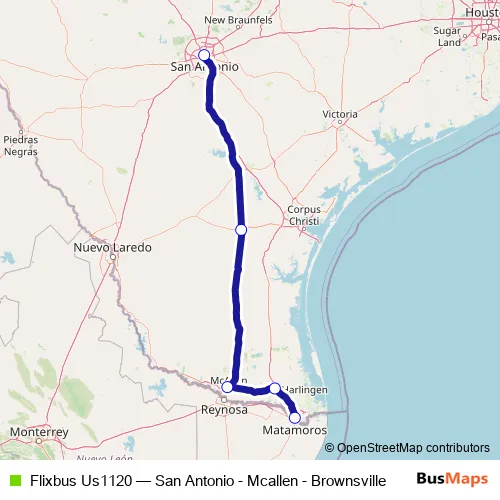 Click here to view the nearest Flixbus Us1120 - San Antonio - Mcallen - Brownsville bus stop.
