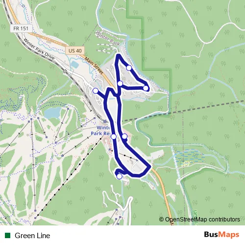 The first stop of the Green Line bus route is Winter Park Resort - Lower Circle and the last stop is Old Town Winter Park. Green Line is operational during everyday.