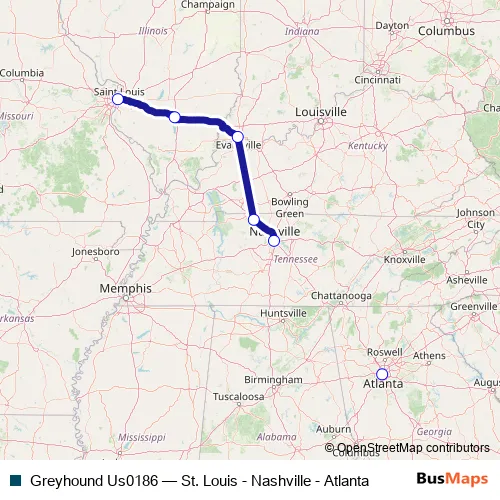Click here to view the nearest Greyhound Us0186 - St. Louis - Nashville - Atlanta bus stop.