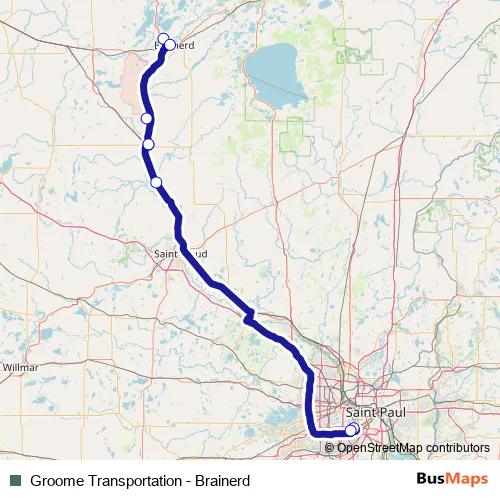 Groome Transportation - Brainerd bus Route Map