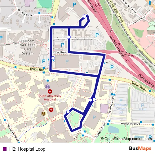 Bus H2: Hospital Loop: Full Schedule in Durham