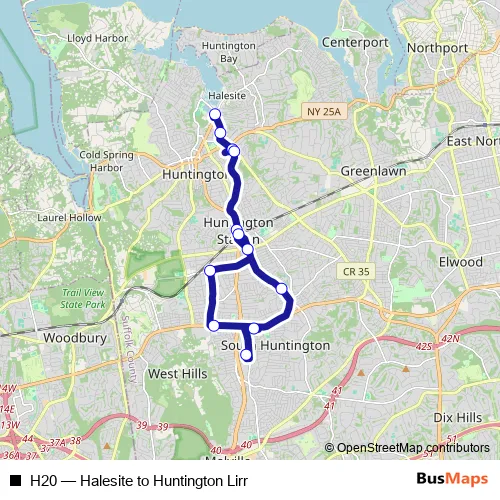 Click here to view the nearest H20 - Halesite to Huntington Lirr bus stop.