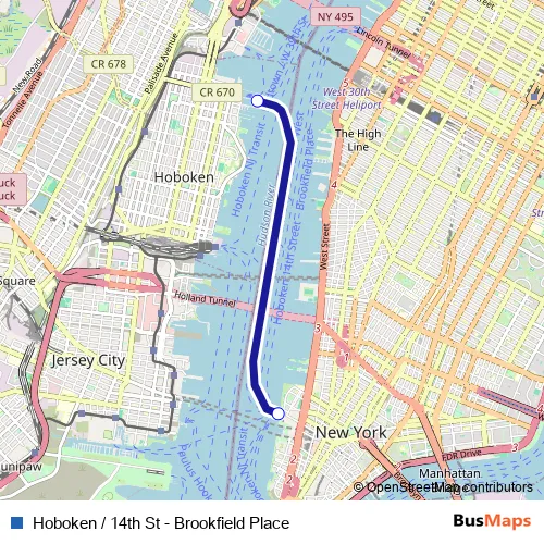 Hoboken / 14th St - Brookfield Place ferry Route Map