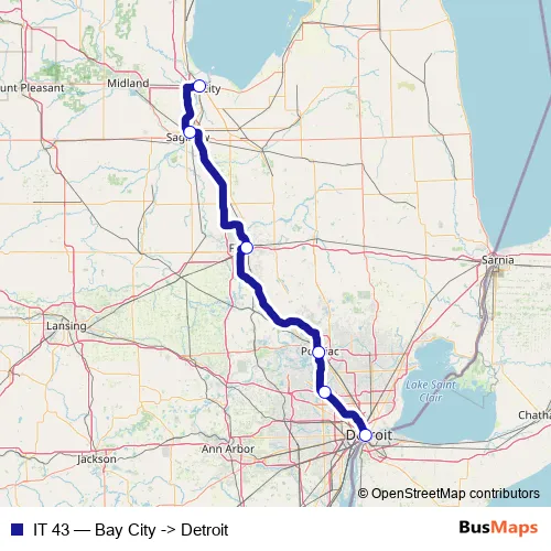 Click here to view the nearest IT 43 - Bay City -> Detroit bus stop.