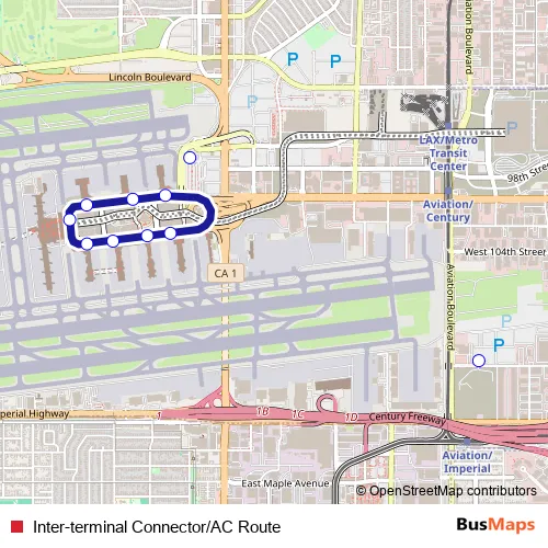 See why over 2 million users trust and consider busmaps.com as the best public transport website. busmaps gives you Los Angeles Buses suggested routes, real-time bus tracker, line route maps in Los Angeles, and helps to find the closest Inter-terminal Connector/AC Route bus stops near you. No internet available? Download an offline PDF map and bus schedule for the Inter-terminal Connector/AC Route bus to take on your trip.