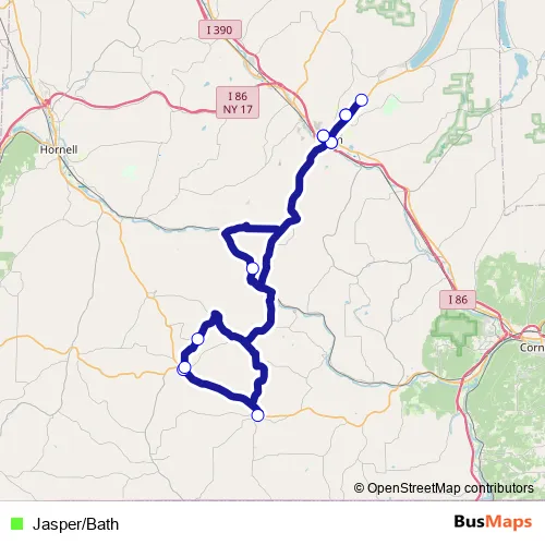 The first stop of the Jasper/Bath bus route is Ira Davenport Memorial Hospital, Bath and the last stop is Arc of Steuben, Bath. Jasper/Bath is operational during on weekdays.