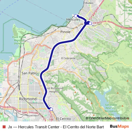 Bus Jx - Hercules Transit Center - El Cerrito del Norte Bart in Hercules: Stops & Timetable