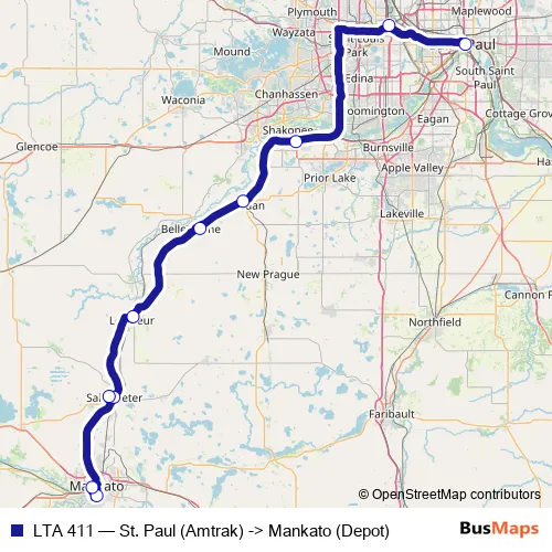 Click here to view the nearest LTA 411 - St. Paul (Amtrak) -> Mankato (Depot) bus stop.