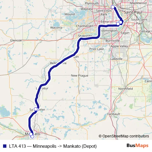 Bus LTA 413 - Minneapolis -> Mankato (Depot): Full Schedule in Saint Peter