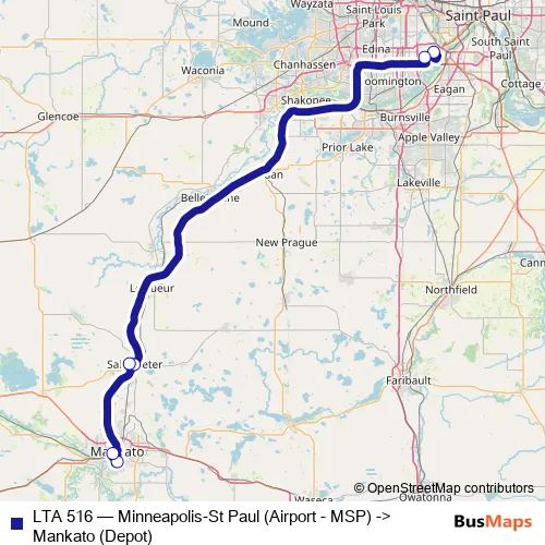 Click here to view the nearest LTA 516 - Minneapolis-St Paul (Airport - MSP) -> Mankato (Depot) bus stop.