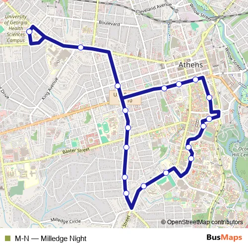 Bus M-N - Milledge Night: Full Schedule in Athens
