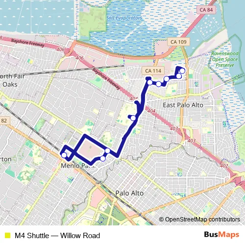 Bus M4 Shuttle - Willow Road Schedule in Redwood City