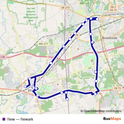 The first stop of the New bus route is 200 Chesapeake Blvd and the last stop is 200 Chesapeake Blvd. New (Newark) is operational during on weekdays.