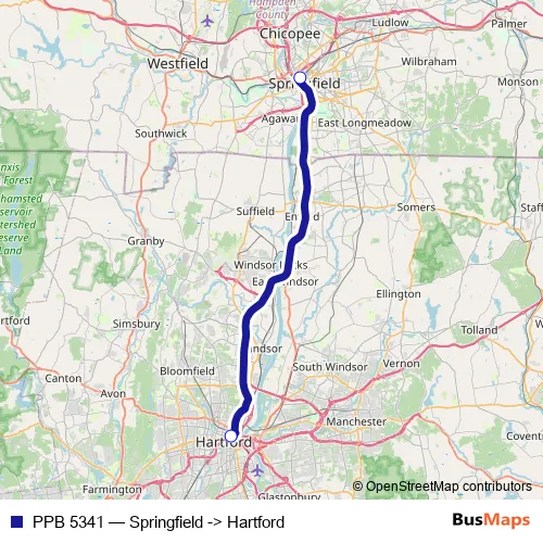 The first stop of the PPB 5341 bus route is Springfield and the last stop is Hartford. PPB 5341 (Springfield -> Hartford) is operational during everyday.