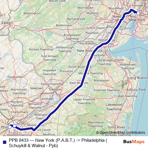 Click here to view the nearest PPB 8433 - New York (P.A.B.T.) -> Philadelphia (Schuykill & Walnut - Ppb) bus stop.