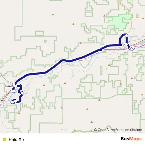 The first stop of the Pats Xp bus route is Rainbow Trail Path and the last stop is Walmart. Pats Xp is operational during on weekdays.