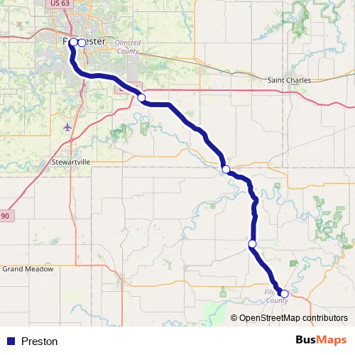 The first stop of the Preston bus route is Preston Fairgrounds and the last stop is 2nd Ave. SW & 3rd St. SW (East side, North). Preston is operational during on weekdays.