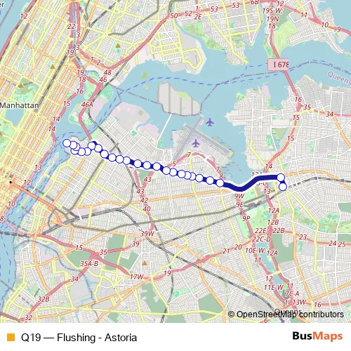 See why over 2 million users trust and consider busmaps.com as the best public transport website. busmaps gives you Manhattan Buses suggested routes, real-time bus tracker, line route maps in Manhattan, and helps to find the closest Q19 bus stops near you. No internet available? Download an offline PDF map and bus schedule for the Q19 bus to take on your trip.