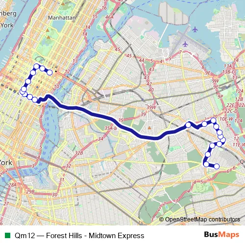See why over 2 million users trust and consider busmaps.com as the best public transport website. busmaps gives you Queens Buses suggested routes, real-time bus tracker, line route maps in Queens, and helps to find the closest Qm12 bus stops near you. No internet available? Download an offline PDF map and bus schedule for the Qm12 bus to take on your trip.