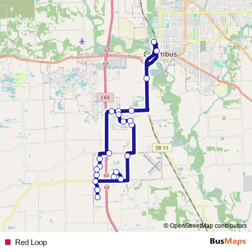 The first stop of the Red Loop bus route is Columbus Transit Depot and the last stop is Columbus Transit Depot. Red Loop is operational during everyday.