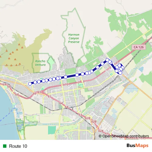 See why over 2 million users trust and consider busmaps.com as the best public transport website. busmaps gives you Ventura Buses suggested routes, real-time bus tracker, line route maps in Ventura, and helps to find the closest Route 10 bus stops near you. No internet available? Download an offline PDF map and bus schedule for the Route 10 bus to take on your trip.