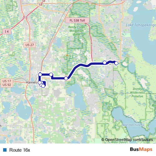 Haines City Plaza. Route 16x is operational during on weekdays.