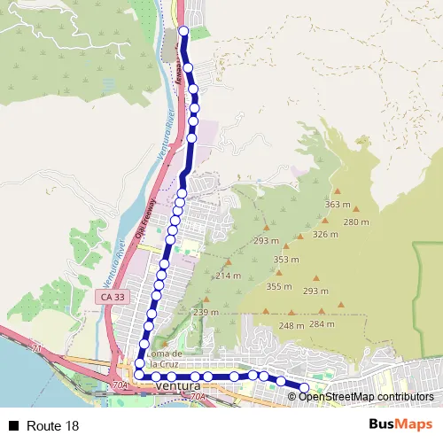 See why over 2 million users trust and consider busmaps.com as the best public transport website. busmaps gives you Ventura Buses suggested routes, real-time bus tracker, line route maps in Ventura, and helps to find the closest Route 18 bus stops near you. No internet available? Download an offline PDF map and bus schedule for the Route 18 bus to take on your trip.