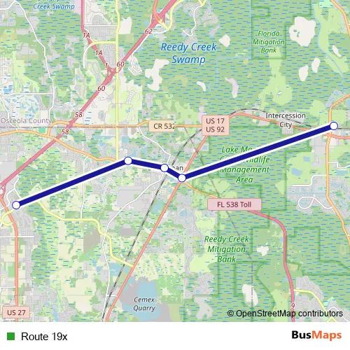 Poinciana Sunrail. Route 19x is operational during on weekdays.