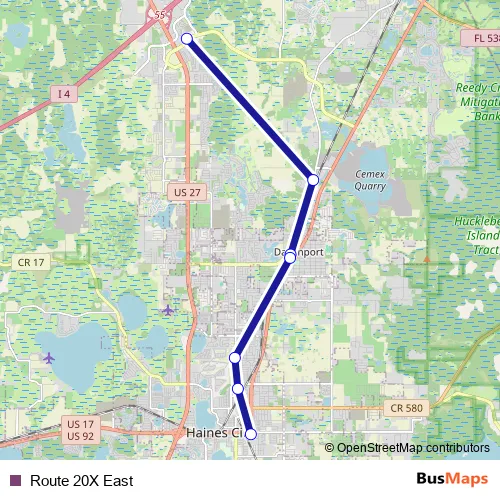 Haines City Plaza. Route 20X East (Route 20X East) is operational during everyday.