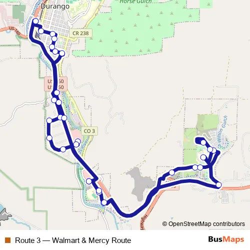See why over 2 million users trust and consider busmaps.com as the best public transport website. busmaps gives you Durango Buses suggested routes, real-time bus tracker, line route maps in Durango, and helps to find the closest Route 3 bus stops near you. No internet available? Download an offline PDF map and bus schedule for the Route 3 bus to take on your trip.
