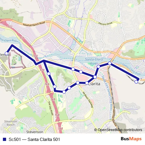 The first stop of the Sc501 bus route is Santa Clarita Station/22122 Soledad Canyon Rd and the last stop is Santa Clarita Station/22122 Soledad Canyon Rd. Sc501 (Santa Clarita 501) is operational during on weekdays.