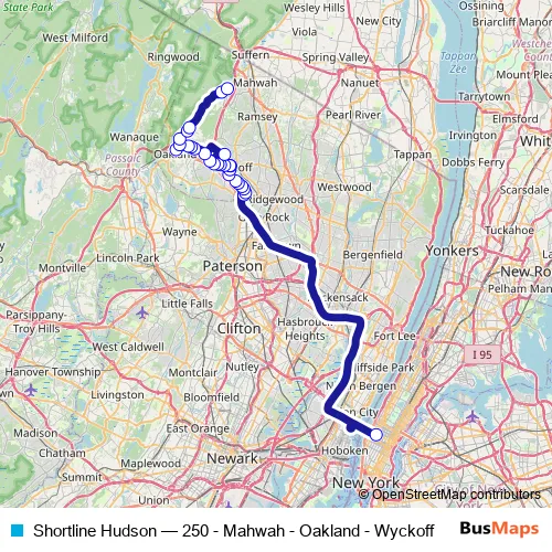 Bus Shortline Hudson - 250 - Mahwah - Oakland - Wyckoff in Paterson: Stops & Timetable