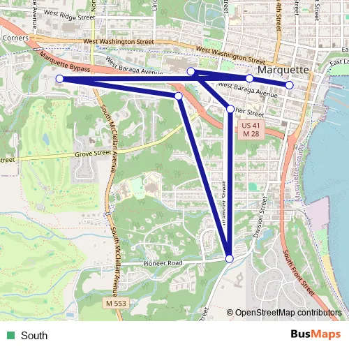 See why over 2 million users trust and consider busmaps.com as the best public transport website. busmaps gives you Marquette Buses suggested routes, real-time bus tracker, line route maps in Marquette, and helps to find the closest South bus stops near you. No internet available? Download an offline PDF map and bus schedule for the South bus to take on your trip.
