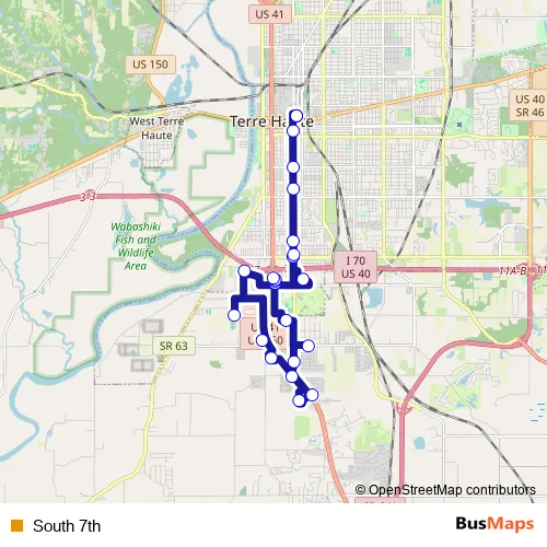 See why over 2 million users trust and consider busmaps.com as the best public transport website. busmaps gives you Terre Haute Buses suggested routes, real-time bus tracker, line route maps in Terre Haute, and helps to find the closest South 7th bus stops near you. No internet available? Download an offline PDF map and bus schedule for the South 7th bus to take on your trip.
