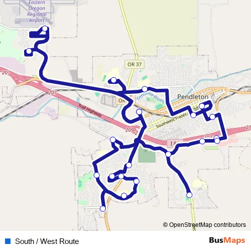See why over 2 million users trust and consider busmaps.com as the best public transport website. busmaps gives you Pendleton Buses suggested routes, real-time bus tracker, line route maps in Pendleton, and helps to find the closest South / West Route bus stops near you. No internet available? Download an offline PDF map and bus schedule for the South / West Route bus to take on your trip.