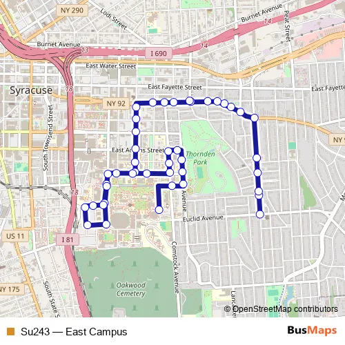 Bus Su243 - East Campus: Full Schedule in Syracuse