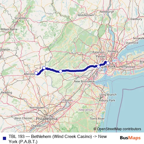 Click here to view the nearest TBL 193 - Bethlehem (Wind Creek Casino) -> New York (P.A.B.T.) bus stop.