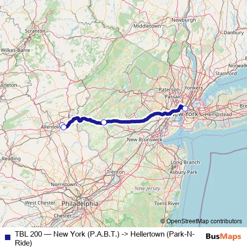 TBL 200 Bus - New York (P.A.B.T.) -> Hellertown (Park-N-Ride)