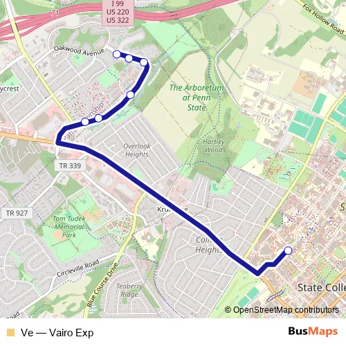 The first stop of the Ve bus route is Vairo Blvd opposite Vairo Village(Upper) and the last stop is Pattee Transit Center Eastbound. Ve (Vairo Exp) is operational during on weekdays.